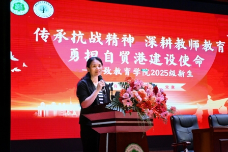 9月19日上午,我院党委书记党意以《传承抗战精神,深耕教师教育,勇担自贸港建设使命》为题,为全体2025级新生带来了一堂内涵丰富的开学第一课。