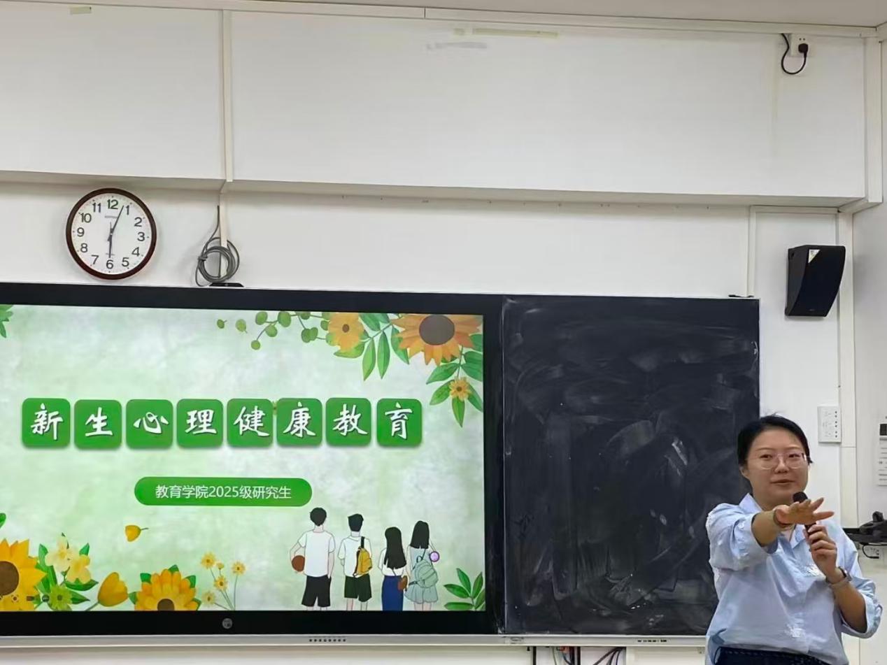 为了帮助2025级研究生新生快速融入集体、增强心理调适能力,教育学院于2025年9月26日晚,在桂林洋校区第二公共楼202教室开展了主题为“研路初见”的新生心理健康教育活动。本次活动特别邀请校心理工作站齐梓帆老师,由齐老师带领,通过一系列精心设计的团体游戏,让新生在轻松互动中学习心理健康知识,增强团队凝聚力。