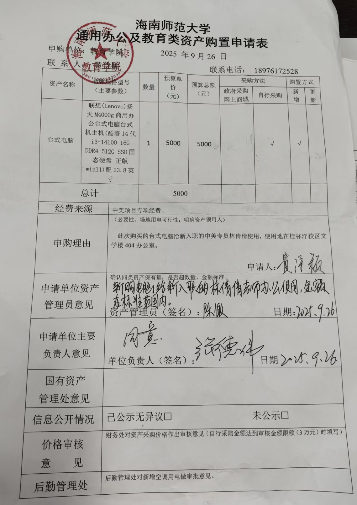 海南师范大学教育学院申请采购以下设备,根据学校相关规定,对购置物品进行公示如下,公示时间为9月29日-10月1日,如有异议请拨打电话:65889325。