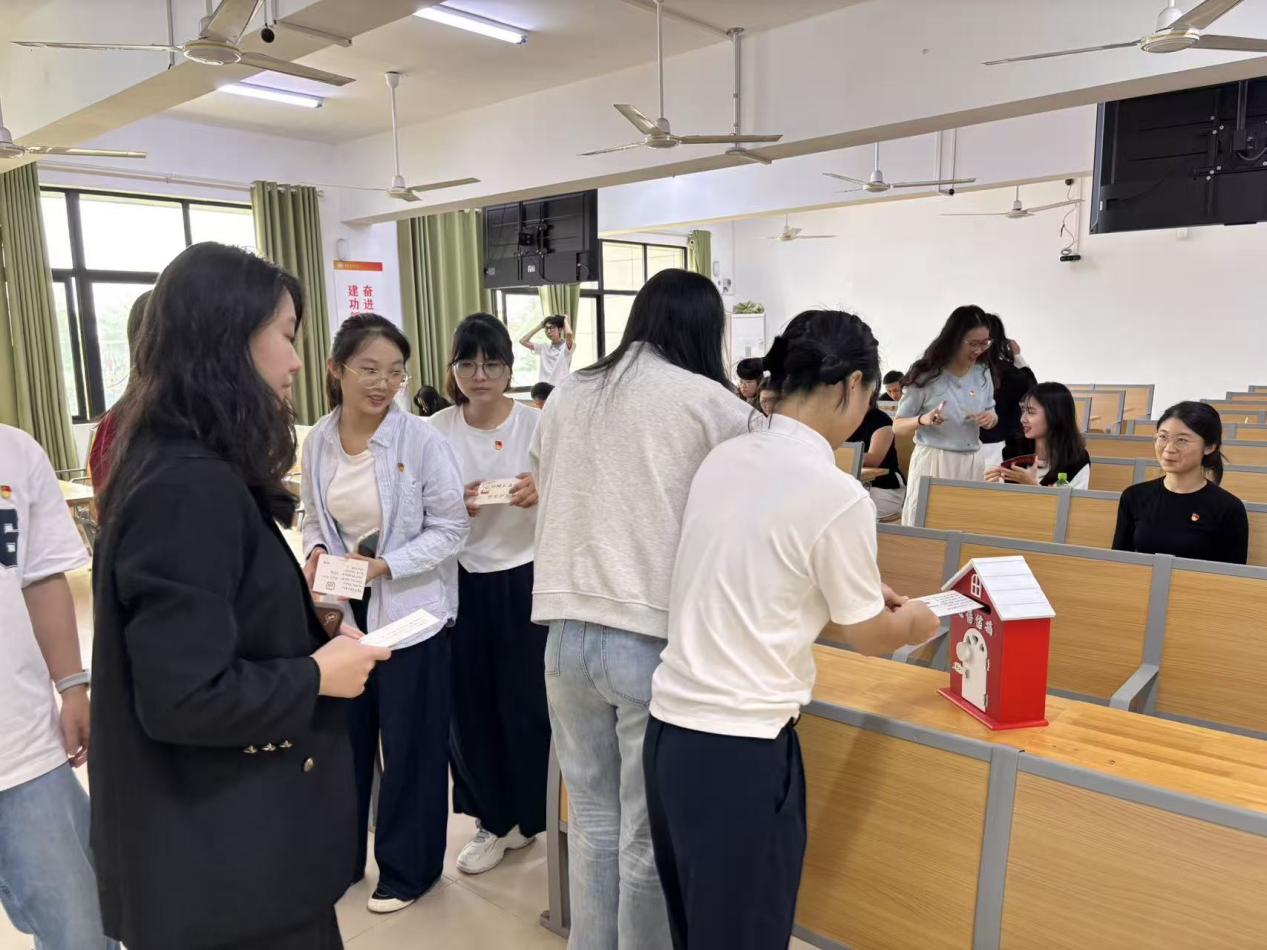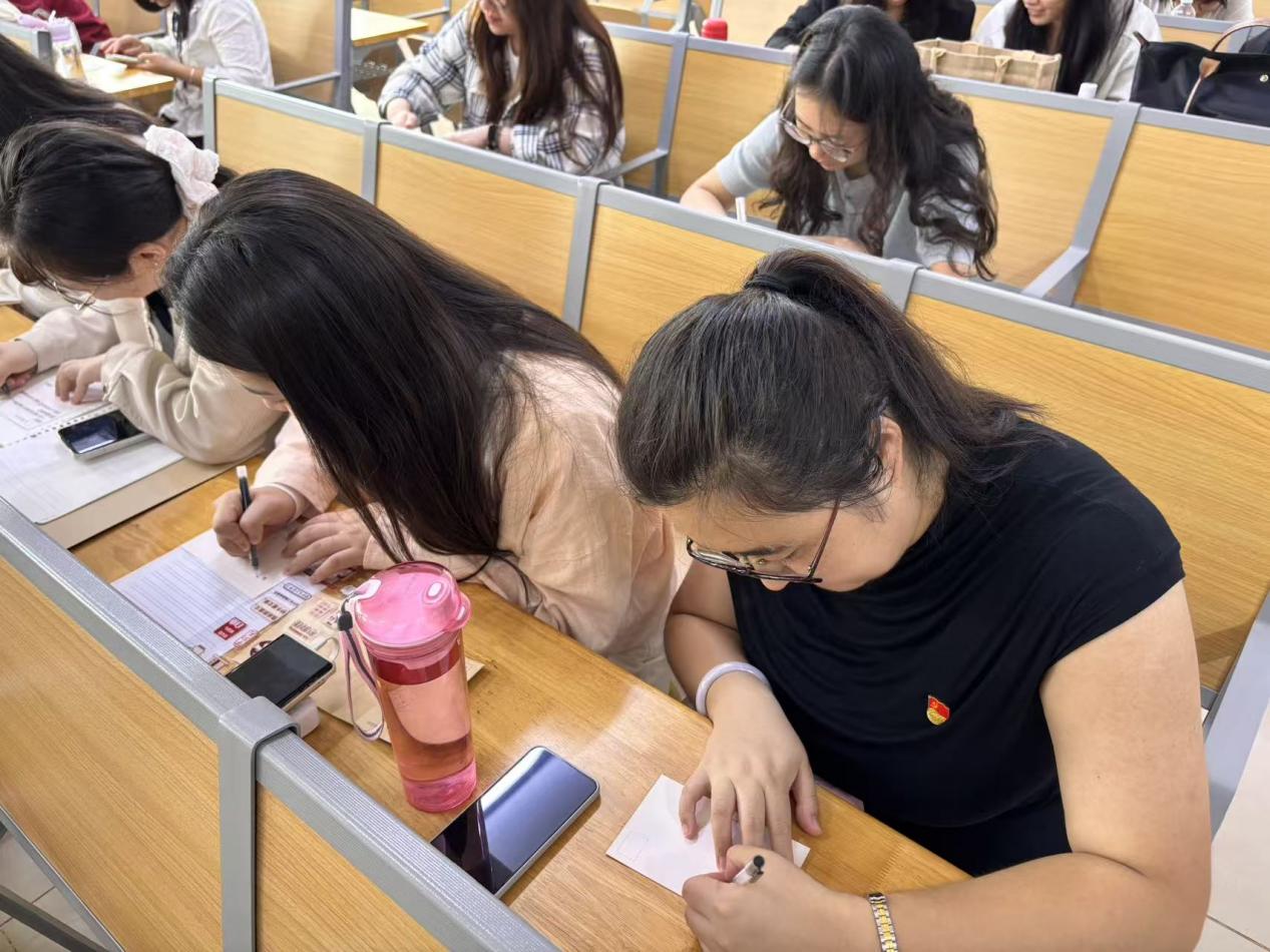 随后,党支部副书记单琦斐进行“研途铸魂:党的四中全会精神领航”专题党课。她围绕党的二十届四中全会精神,从时代背景、核心要义、实践要求等维度展开系统解读,重点聚焦教育事业高质量发展的重要论述,结合支部工作实际剖析当前教育领域的机遇与挑战。学习过程中,党员同志踊跃交流,分享学习感悟,一致表示将以实际行动助力教育事业发展。本次学习还特别设置“展望未来·青春誓言“环节,为凝聚青春力量、践行使命担当注入新动能。支部为每位党员发放专用信纸与信封,大家结合自身专业实际,围绕立德树人、教育创新等主题,书写“对十五五期间教育方面的展望”,字里行间满含对教育事业的热爱与责任。党员同志将签名后的信件密封投入信箱,由支部统一收集保管。王博表示,这些信件是全体党员的履职承诺见证,以此激励大家以坚定信念与务实作风投身教育事业。