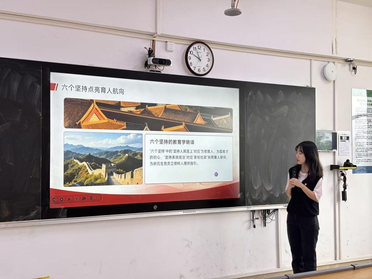 为引导全体研究生党员精准把握党的二十届四中全会精神核心要义,深刻领会全会擘画的 “十五五” 发展蓝图,凝聚党员精神力量,2025年10月31日09:40,教育学院研究生党支部在桂林洋校区第二公共教学楼208教室召开党的二十届四中全会精神学习专题党课,全体研究生党员参会,支部书记王博同志主持学习。
