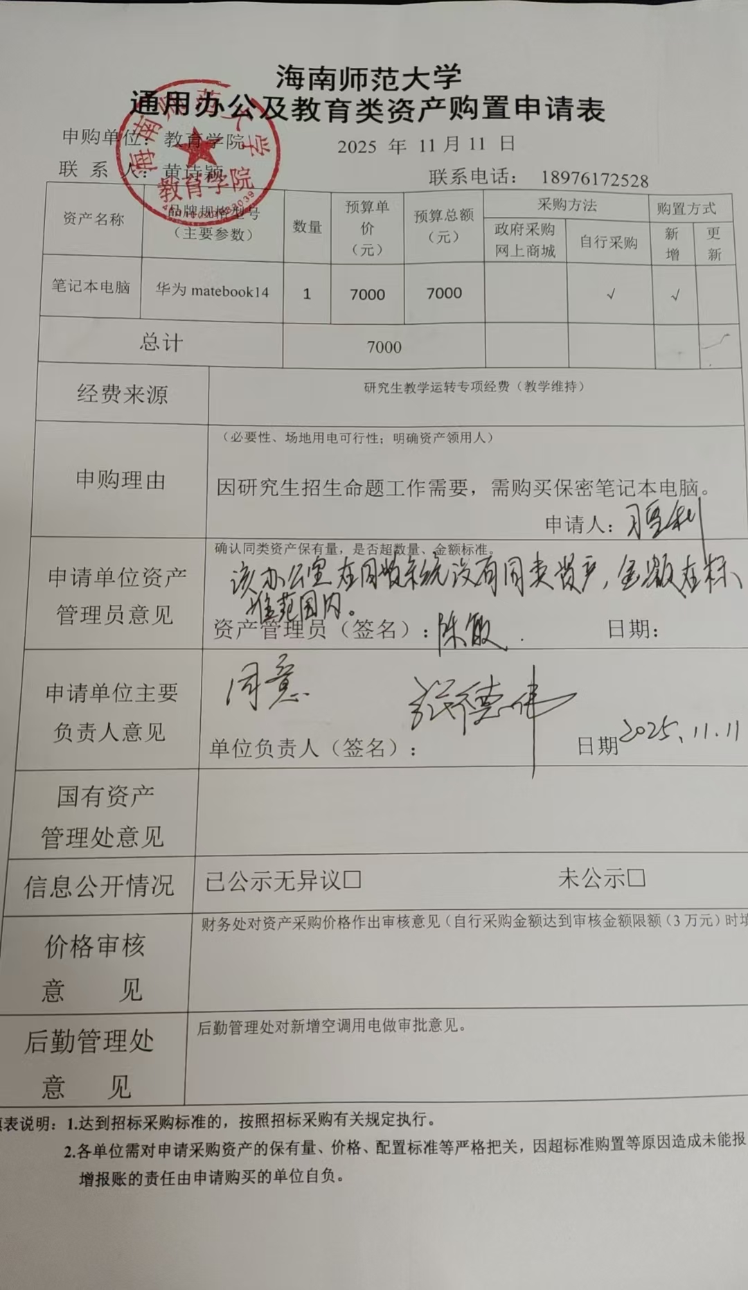 海南师范大学教育学院申请采购以下设备,根据学校相关规定,对购置物品进行公示如下,公示时间为11月14日-11月16日,如有异议请拨打电话:65889325。