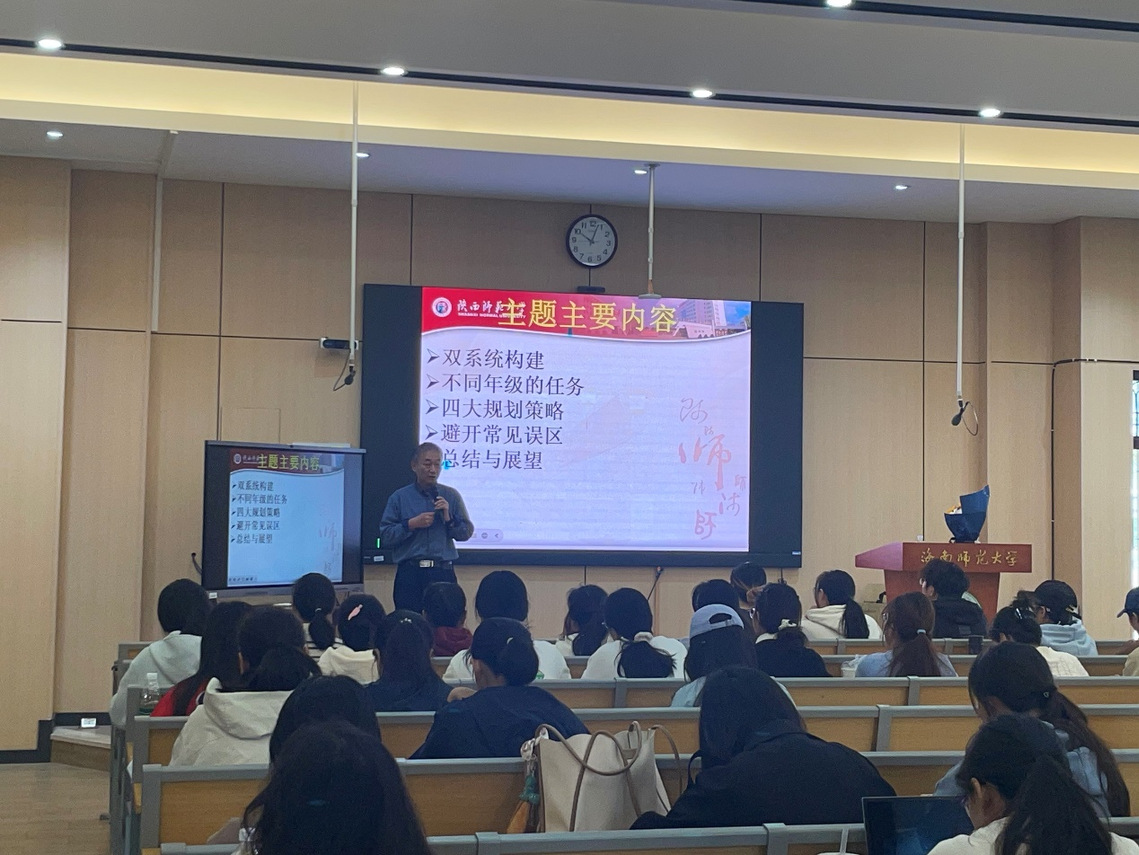 2025年12月28日上午,陕西师范大学郭文斌教授在第二公共楼111教室为我院特殊教育系学生作了题为《做好学术生涯规划 助推学业更加出彩》的讲座。讲座由我院特殊教育系主任戴健雨老师主持,特殊教育专业本科生、研究生参加讲座。